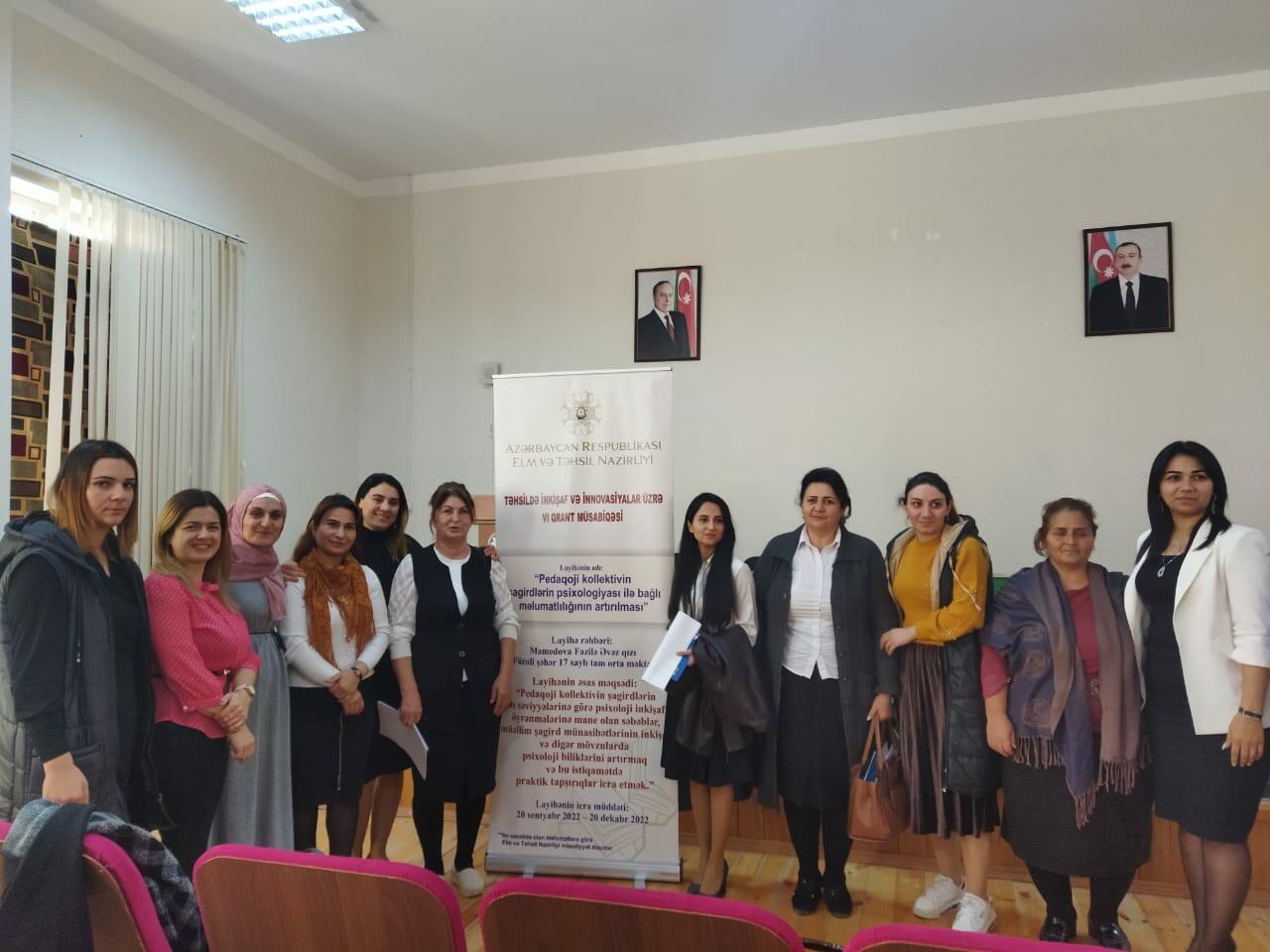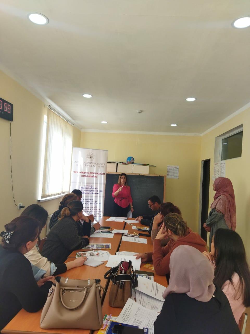 VI qrant müsabiqəsində qalib olan "Pedaqoji kollektivin şagirdlərin psixologiyası ilə bağlı məlumatlılığının artırılması" layihəsi çərçivəsində təlimlərə başlanılıb.