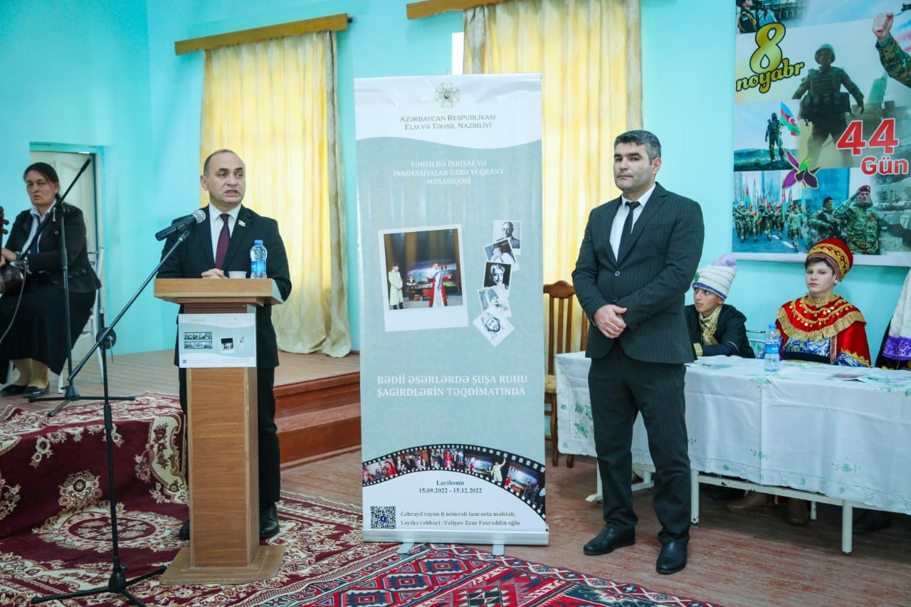 Təhsildə inkişaf və innovasiyalar üzrə VI qrant müsabiqəsinin qalibi olmuş Cəbrayıl rayon 8 nömrəli tam orta məktəbin Azərbaycan dili və ədəbiyyatı müəllimi Vəliyev Zaur Fəxrəddin oğlunun rəhbəri olduğu "Bədii əsərlərdə Şuşa ruhu şagirdlərin təqdimatında" adlı layihənin təqdimat mərasimi keçirilib.
