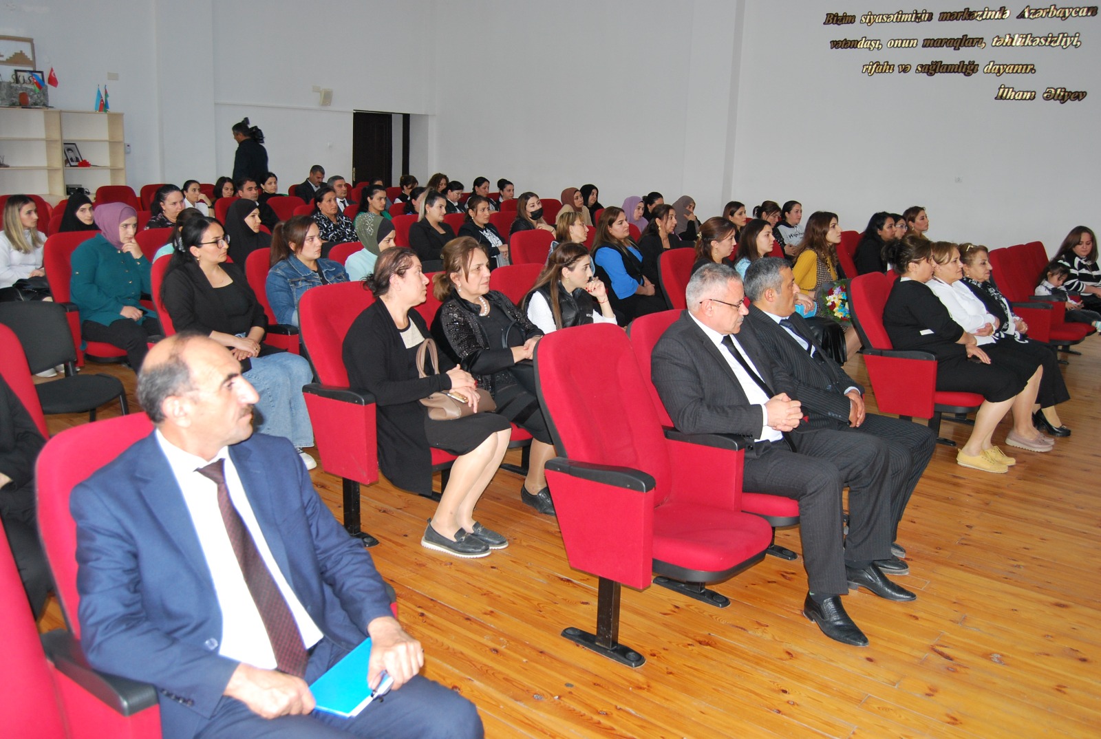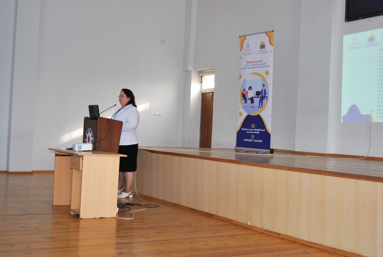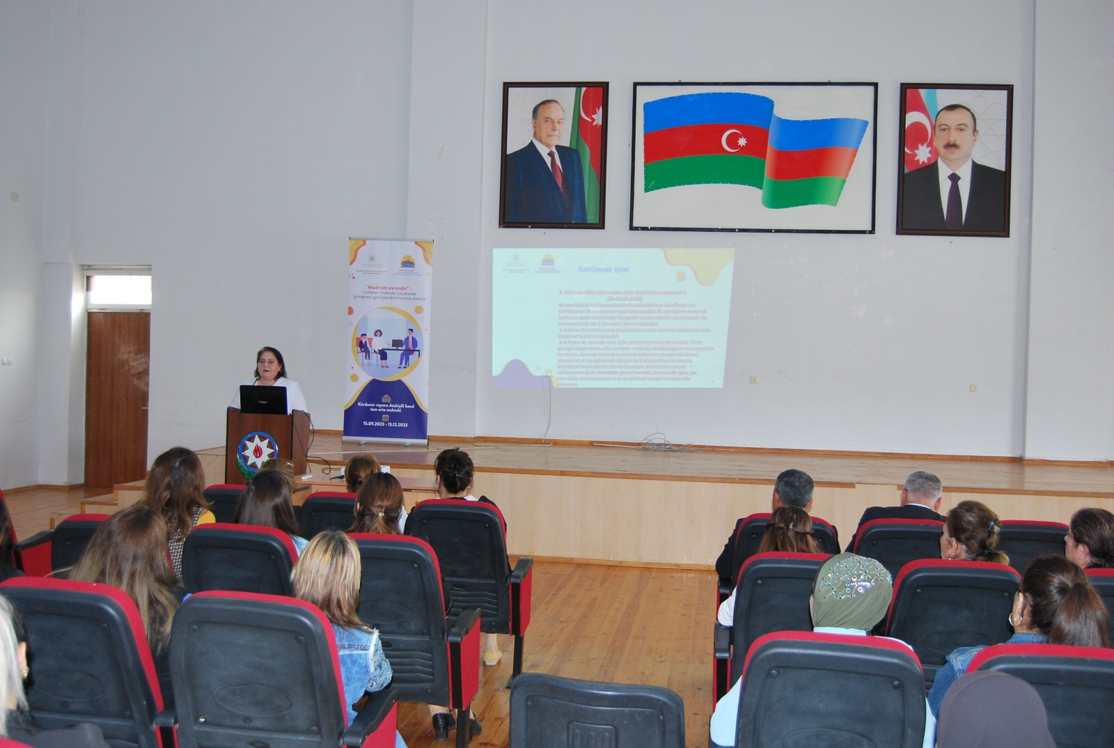 Çıxış edən layihə rəhbəri layihə haqqında ətraflı məlumat verib. Qeyd edib ki, layihənin həyata keçirilməsində məqsəd “Məktəb evimdir!” proqramı çərçivəsində icma üzvlərini – valideynləri təlimatlandırmaqla icma-məktəb münasibətlərinin inkişaf etdirilməsi üçün 10 təşəbbüsün həyata keçirilməsidir. Layihənin məqsədinə çatmaq üçün məktəb kollektivi layihənin əhəmiyyəti, gələcək faydası və davamlılığı ilə bağlı məlumatlandırılacaq, icmanın əsas üzvləri olan məktəbin ibtidai sinif valideynləri üçün məktəb arasında əməkdaşlıq və onun formaları ilə bağlı təlim təşkil edilməsi, layihəyə cəlb olunacaq valideynlərin seçimi ilə bağlı kriteriyalar müəyyənləşdirilməsi əsas hədəflərdəndir.