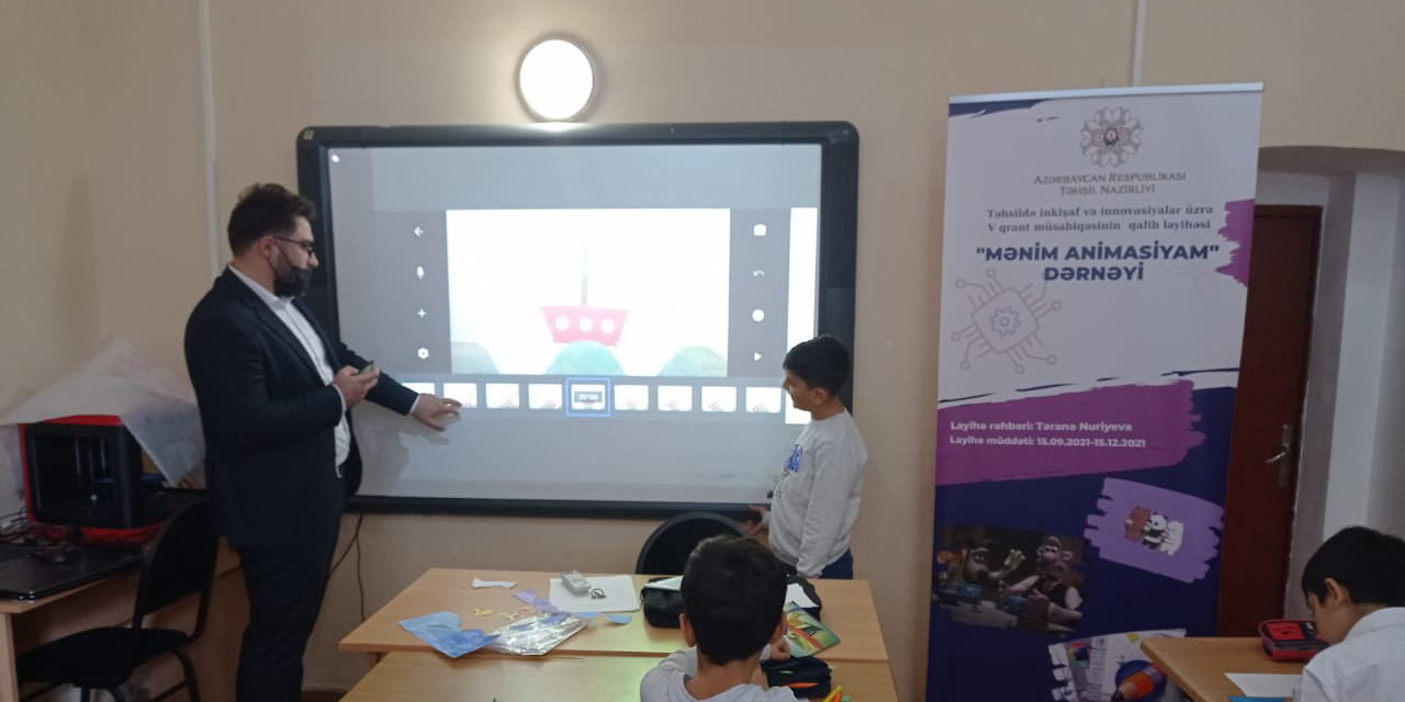 bir tərəfdən isə şagird öz düzəltdiyi animasiyanı ətrafdakı insanlara izah