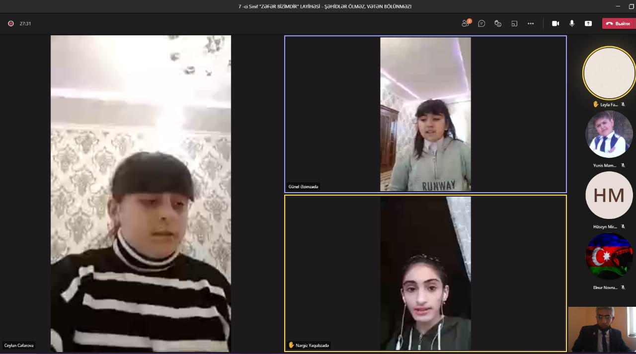 06.12.2021 tarixində həmin məktəbin 7-ci sinif şagirdlərinin iştirakı ilə "Şəhidlər ölməz!" mövzusunda onlayn təlim həyata keçirilib. Təlimi layihənin rəhbəri Aqşin Əliyev keçib.