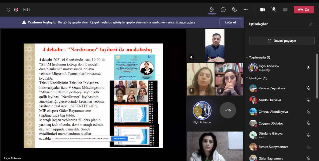 V qrant müsabiqəsinin qalib layihəsi olan “Müasir müəllimin pedaqoji saytı” layihəsinin "Microsof Teams" platforması üzərindən onlayn qaydada bağlanış tədbiri keçirildi.